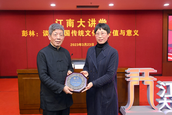 彭林教授兼任中国经学研究院院长、浙江大学马一浮书院敦和讲席教授、无锡国专历史研究会荣誉会长,长期从事中国古代史与学术思想史的教学与研究。伍红林对彭林的到来表示热烈欢迎,李佳敏向彭林颁发了江南大讲堂讲席教授聘书。