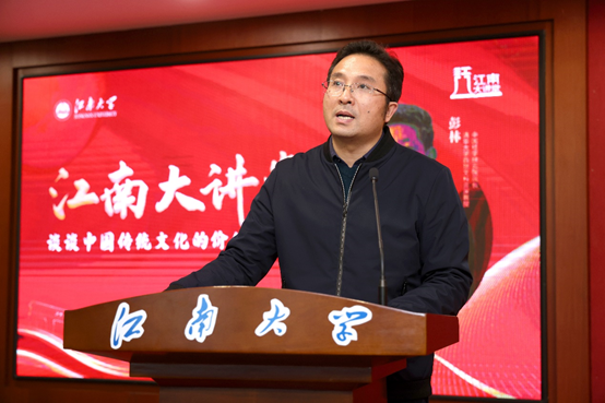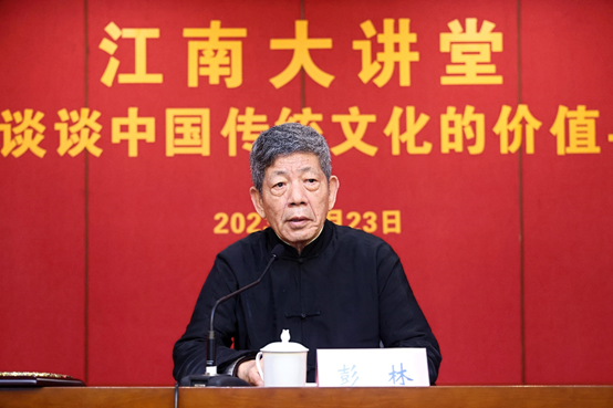 3月23日,清华大学文科资深教授彭林作客《江南大讲堂》为广大师生带来了一场“谈谈中国传统文化的价值与意义”的精彩报告。本次大讲堂由江南大学党委宣传部、人文学院、江南文化研究院主办,江南大学党委宣传部部长李佳敏,人文学院党委书记姚剑英,副院长(主持工作)伍红林、副院长于书娟,无锡国专历史研究会副会长李素洁等人出席。报告会由伍红林主持。