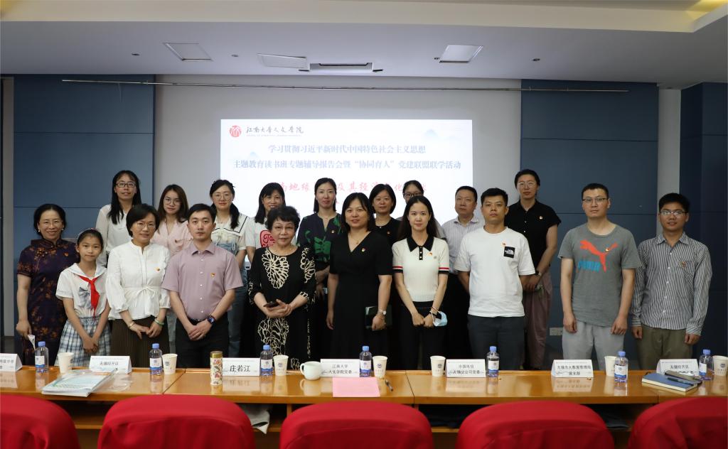 为深入学习贯彻习近平新时代中国特色社会主义思想,推动主题教育走深走实走细,6月1日下午,人文学院学习贯彻习近平新时代中国特色社会主义思想主题教育读书班专题辅导报告会暨“协同育人”党建联盟联学活动在田家炳楼209顺利举行。全国优秀人文科普专家、无锡市政府智库专家、人文学院庄若江教授作《江南地缘界定及其经济文化贡献》专题报告,学院班子成员、师生党支部代表与中国电信无锡分公司党委、无锡市大数据管理局党支部、经开区教育局党委、江南中学党委、太湖格致中学党支部、尚贤融创小学党支部、尚贤万科小学党支部、太湖街道党工委、信成花园社区党总支等“协同育人”党建联盟单位共同联学。报告会由人文学院党委副书记、副院长李萍主持,线上线下同步进行,共计600余人参与。