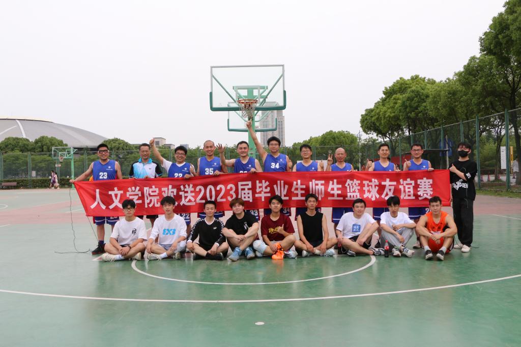 始于初秋,别于盛夏。为进一步做好毕业生文明离校工作,营造文明温馨、健康向上的校园氛围,增进师生之间的交流,6月3日下午,人文学院欢送2023届毕业生师生篮球友谊赛在学校中心篮球场拉开帷幕。人文学院副院长马志强,教职工代表和毕业班学生及各年级学生代表参加了此次篮球赛。