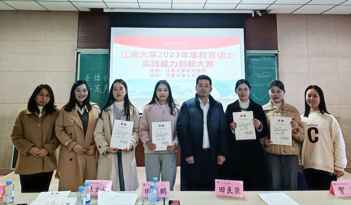 近日,由江南大学研究生院、研究生工作部主办,人文学院承办的江南大学2023年度教育硕士实践能力创新大赛在人文学院田家炳楼315成功举行。比赛由人文学院副院长于书娟主持,田良臣教授、蔡华祥教授、杜文彬副教授、田贤鹏副教授、贺昱副教授和李丹杨副教授担任评委。2023级教育硕士研究生也到现场进行观摩学习。