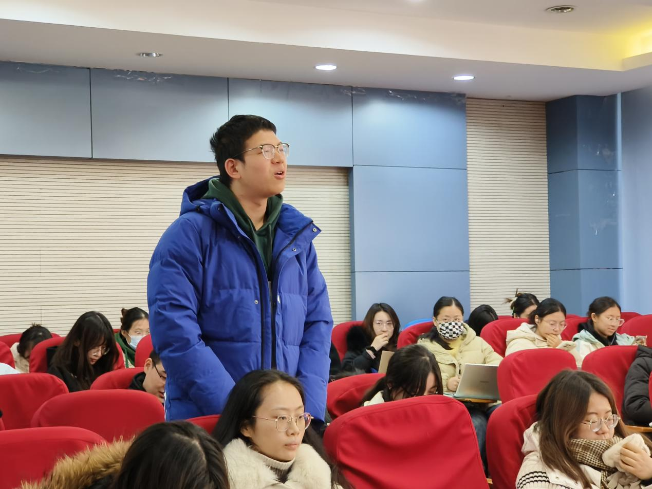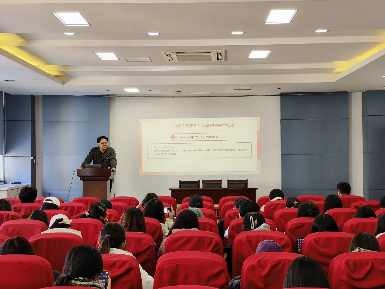 郑宇以《中国式现代化的理论与实践》为题,系统全面地为大家讲解了“何为中国式现代化?”“如何实现中国式现代化?”等问题。郑宇指出,坚持中国共产党的领导,坚持中国特色社会主义,实现高质量发展、发展全过程人民民主、丰富人民精神世界、实现全体人民共同富裕、促进人与自然和谐共生、推动构建人类命运共同体、创造人类文明新形态是中国式现代化的本质要求,我们要按照社会主义核心价值观的要求,坚定地朝着社会主义方向迈进。郑宇还和现场同学进行了深入交流,他勉励人文学子,作为新时代青年,要始终不忘初心、牢记使命,不折不扣地落实好学习工作的各项要求,以青春之我报青春之国家,为中华民族伟大复兴提供源源不断的青春力量。