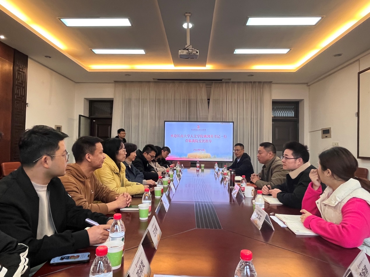 12月15日,由人文学院党委书记姚剑英、党委副书记李萍带队一行赴全国首批党建工作标杆院系浙江师范大学人文学院调研学习。