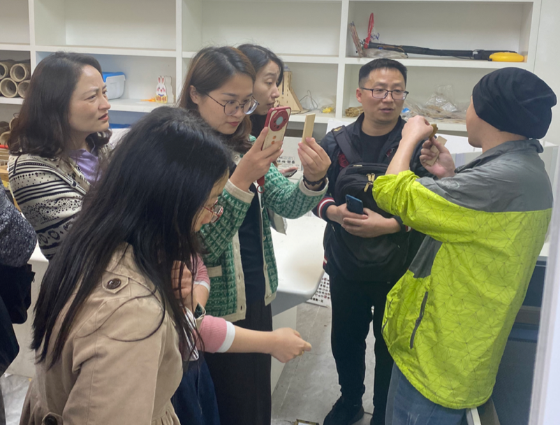 本次研学的最后一天,学员来到上海世外教育附属宝山中环实验小学,观看完学校基本概况的介绍视频后,魏丽娟主任从教师发展、学生发展和学校发展三个方面对学校的办学特色展开了详细介绍,也同与会的校长们分享了校内优质的项目化学习教学案例集。接着,张晓岚老师带领四年级学生呈现了一堂颇具上海特色的劳动技术课——多功能垃圾袋架模型设计。学生动手操作,信息化教学平台即时同步学生阶段性的学习成果,“发现问题”,到“解决问题”“优化解决方案”,课堂围绕真实问题,展开具有校本特色的新劳动教育。