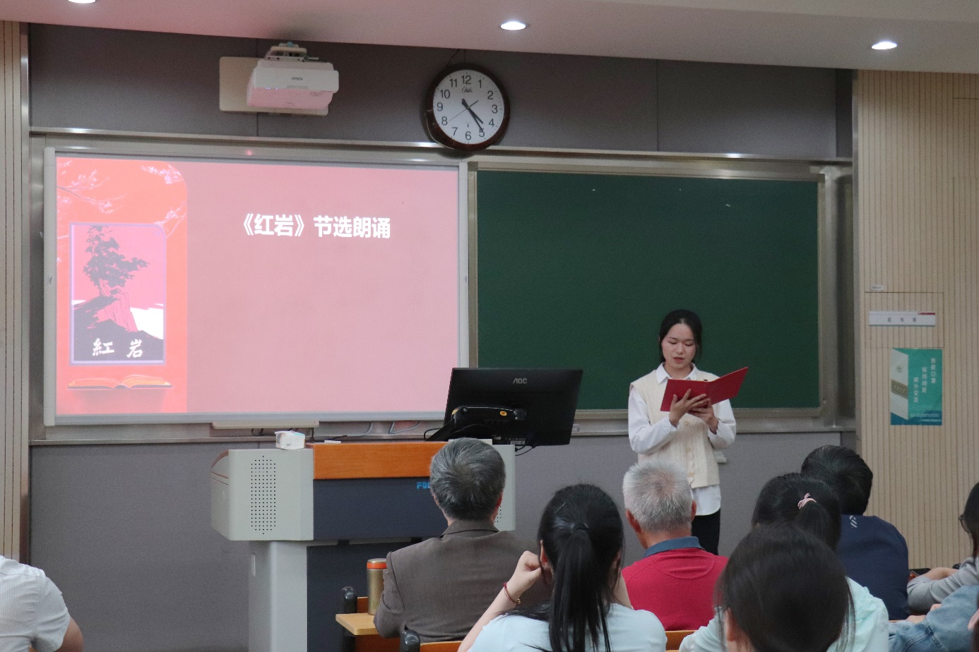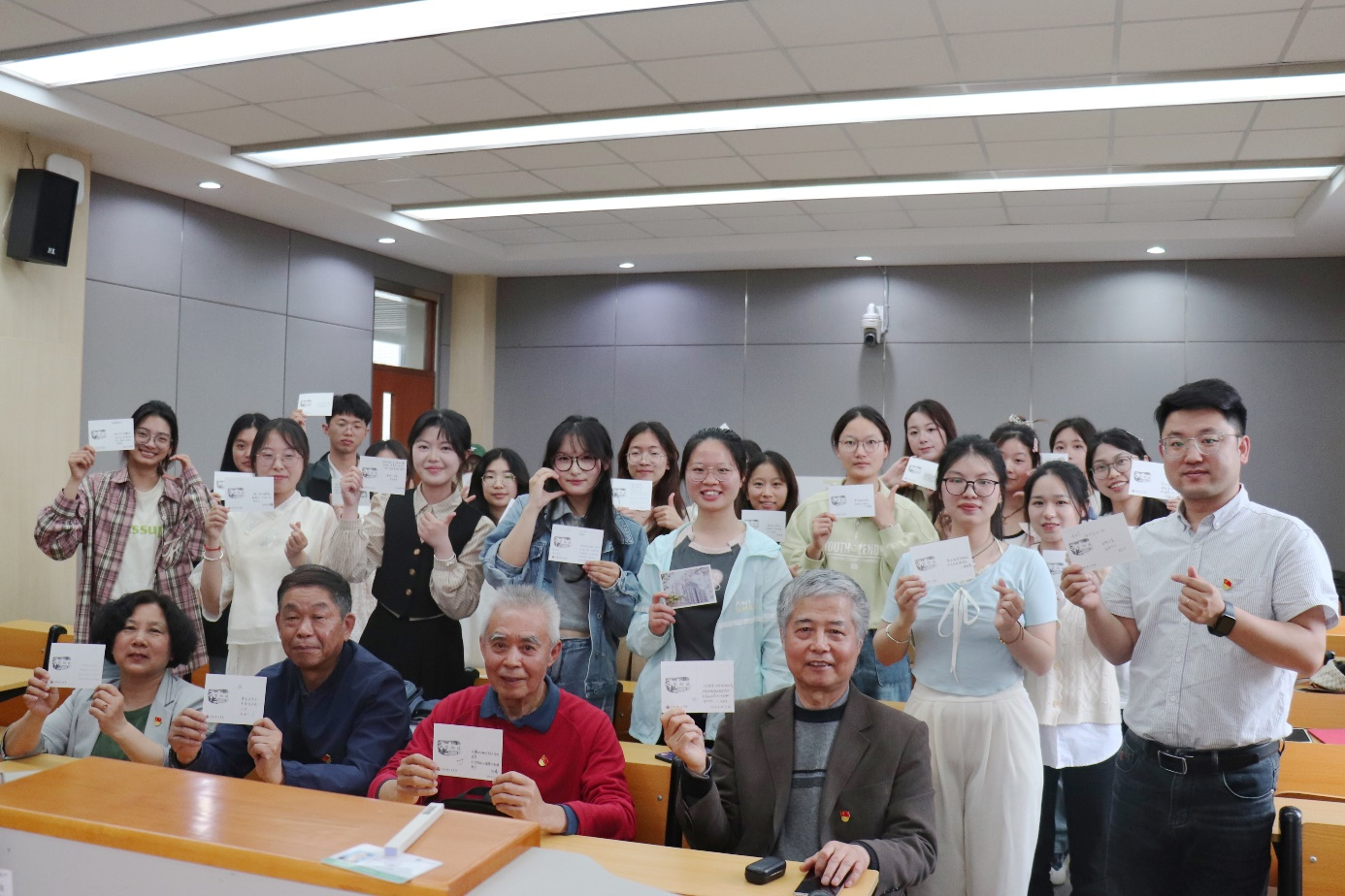 互赠明信片寄语环节,师生在明信片上写下自己关于人生、教育等方面的感悟,共同见证了一场老一辈与新一代携手并肩、链接传统的红色文化传承之旅。“祖国的教育事业靠你们的努力,我们看好你们!”一声声谆谆教诲,一句句鼓励,一个个肯定的眼神,使得参与同学获益良多,不仅加深了对经典文学的热爱,更在老少携手的过程中感受到了薪火相传的力量。