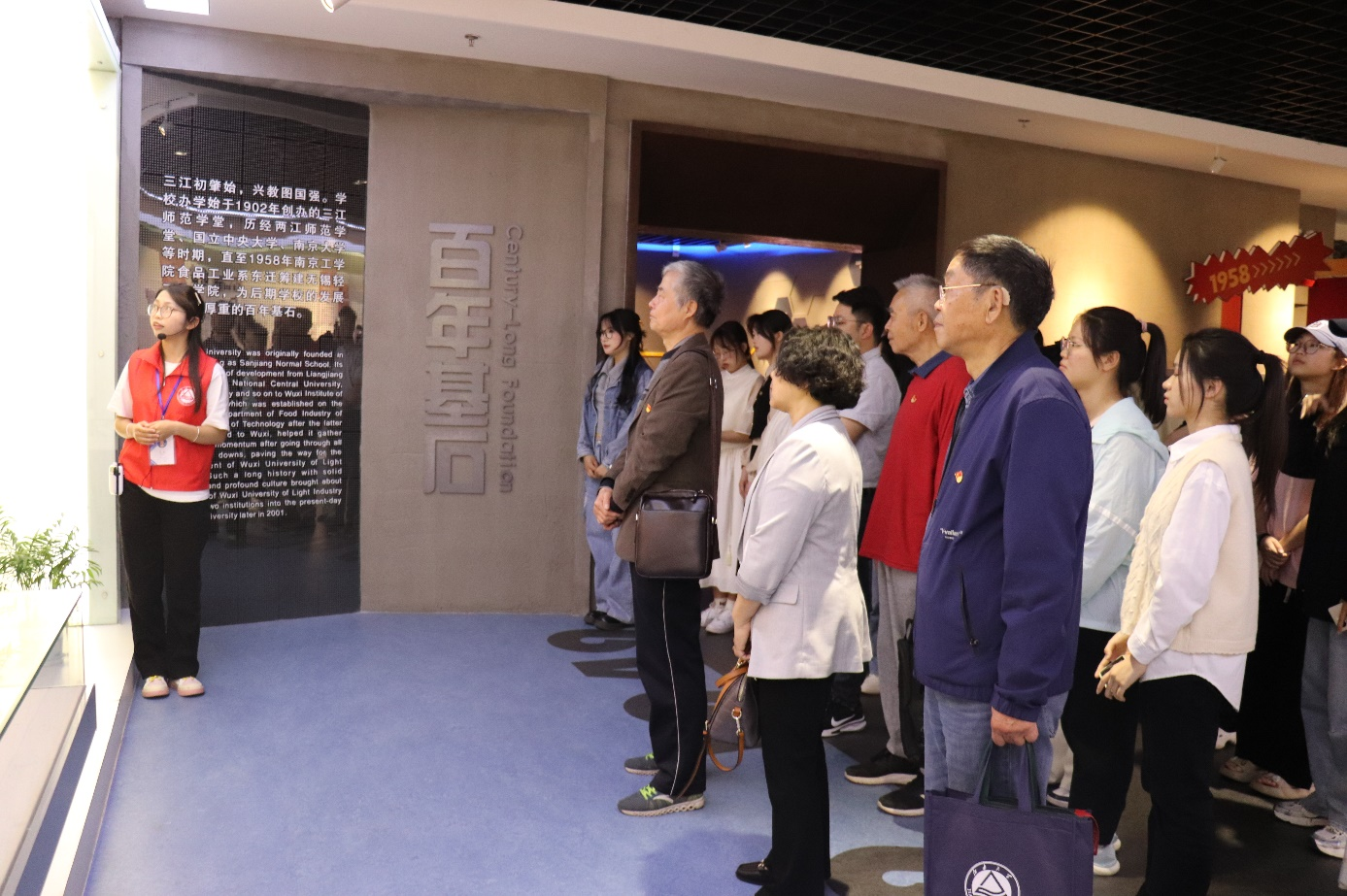 活动伊始,老同志与同学们一起参观了校史馆。陈仲康与校史馆讲解员、小教2303团支部陈曦同学一起,为大家详细介绍了学校发展的历史进程,向同学们悉数了学校为国家发展做出的突出贡献。老同志深情讲述了自己在江南大学的工作经历,并以此勉励同学们勇担教育强国建设的重任使命。