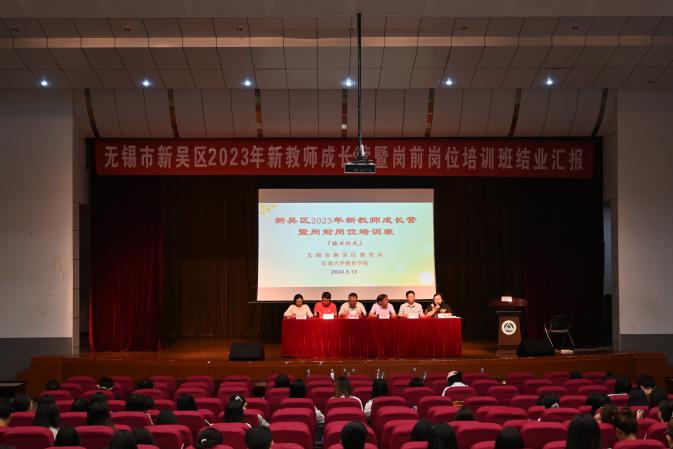 5月18日,由新吴区教师发展中心主办,江南大学校长教师培训中心承办的无锡市新吴区2023年新教师成长营暨岗前岗位培训班小组汇报及结业仪式在江南大学举行。中心特邀新吴区教师发展中心主任丁强、研训部主任过同俭、学前教育中心主任张绿枝、副主任曹玉兰,后宅中心小学书记、校长周永强,无锡市优秀教育工作者、无锡市立人幼儿园教师顾琦,江南大学教育学院院长助理、副教授钱逸舟、杜芳芳、博士杜文彬等九位老师担任此次活动点评专家,587名新教师参加了本次活动。