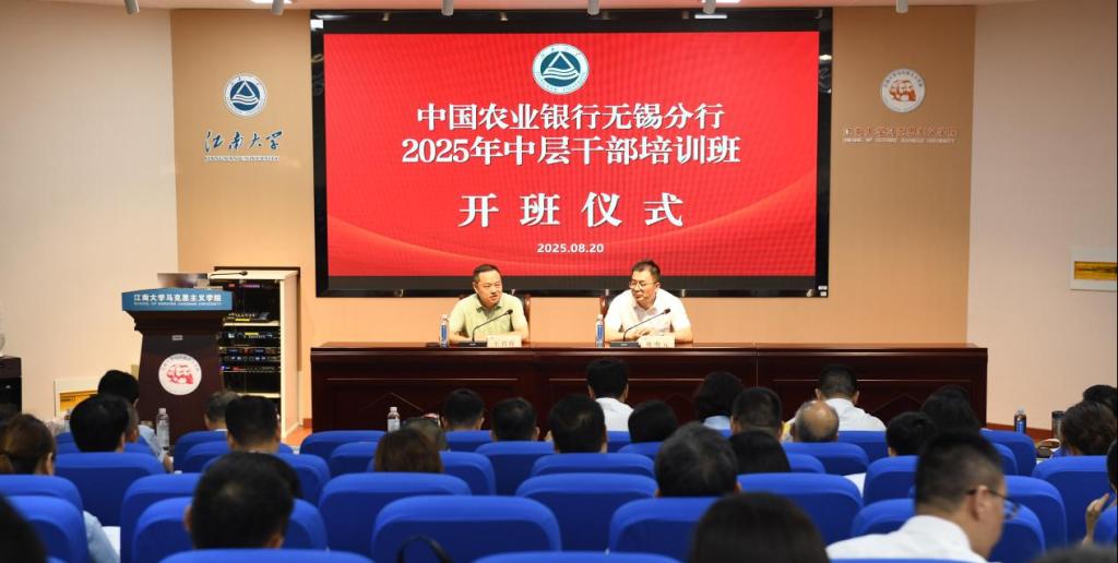 中国农业银行无锡分行2025年中层干部培训班于8月20日上午在江南大学顺利开班,中国农业银行无锡分行人力资源部总经理姚明元、江南大学继续教育学院院长王育红出席开班仪式。