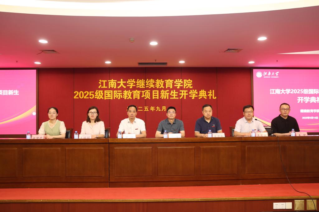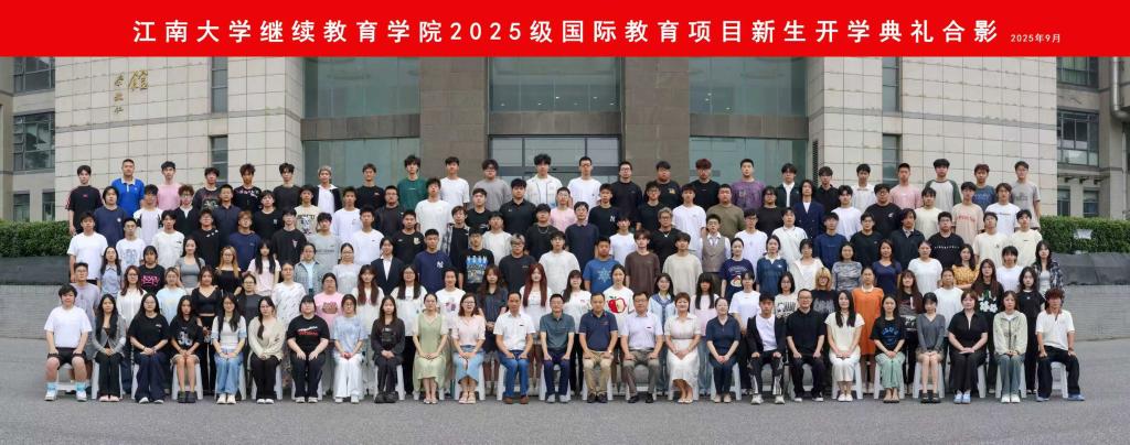 学院领导与同学们集体合影,镜头定格下师生们灿烂的笑容。这张合影不仅承载着美好的记忆,也见证了江南大学继续教育学院2025级国际教育项目全体新同学正式开启崭新的学习征程。