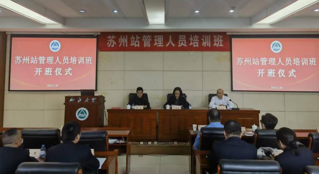 11月4日上午,苏州站管理人员培训班开班仪式在江南大学举行。苏州站站长、党委副书记杨治国,江南大学党委常委、副校长张影陆出席仪式,江南大学继续教育学院党总支书记张文主持开班仪式。