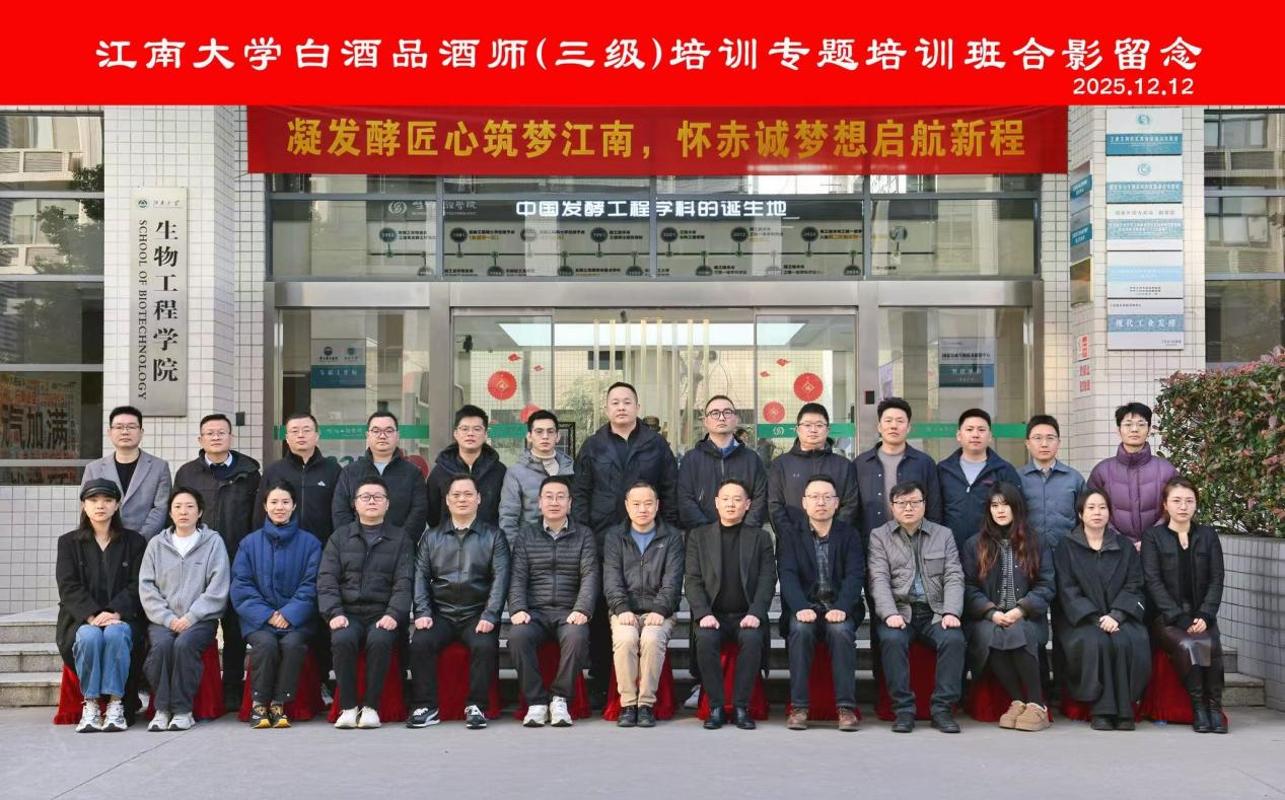 12月12日上午,江南大学白酒品酒师(三级)培训班在江南大学生物工程学院开班。江南大学继续教育学院院长王育红出席开班仪式并讲话,本次培训吸引了23名深耕白酒产业链的学员,他们分别来自生产端、流通渠道及品牌运营等不同领域。