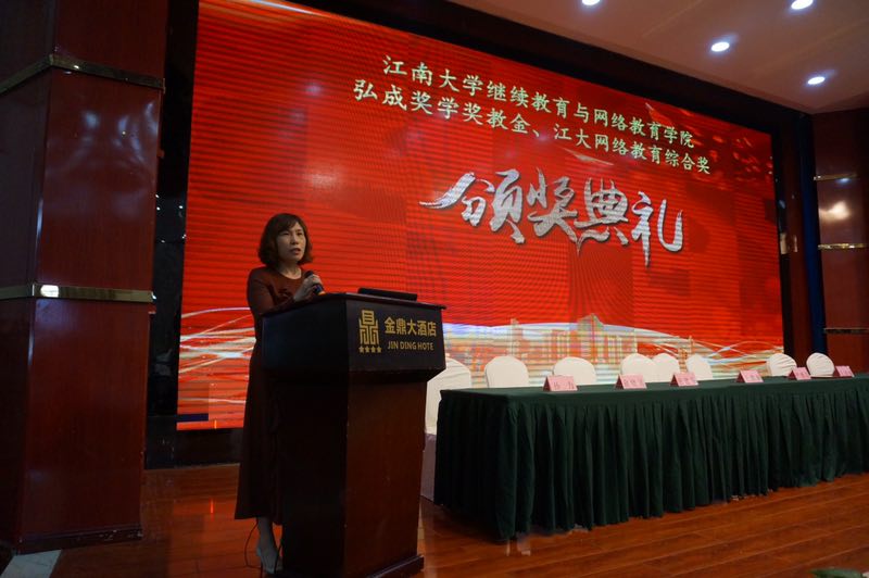 继网学院副院长孙力教授主持2018年度“江南大学-弘成奖学奖教金”、“江南大学网络教育综合奖”、“江南大学奖教金”的颁奖典礼,共有31家单位、253名个人和老师、146名学生获奖。2位获奖单位代表发表获奖感言,他们表示将以此为动力,以教学为重,以质量为重,以学生为重,助力江南大学发展。
