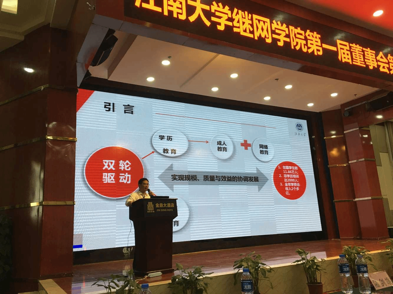 7月27日至29日,江南大学继续教育与网络教育学院(以下简称继网学院)在西宁成功举办第一届董事会二次全体会议暨2019继续教育工作交流会,本次会议由继网学院主办,弘成科技发展公司承办。全国高校现代远程教育协作组秘书长、清华大学教授严继昌,广西广播电视大学网络教育学院副院长唐建军,弘成科技发展公司副总裁潘志昕受邀出席会议。来自43家董事单位的主要负责人、校外合作单位代表、继网学院全体院领导和教职工代表120多人参加大会。