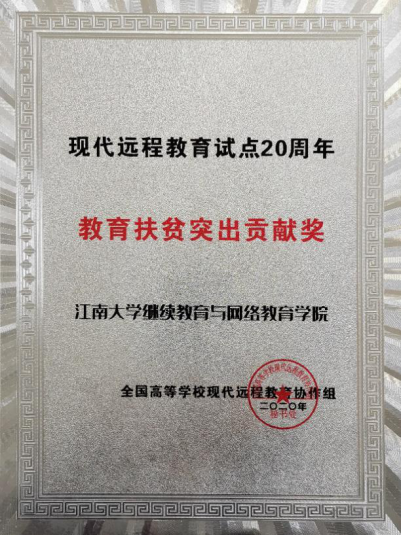 会议向试点工作中作出突出贡献的老同志致敬,对培训工作、教育扶贫、资源共享、教务管理、宣传工作、统考考务工作优秀单位,以及网络教育优秀学生进行了表彰。江南大学继续教育与网络教育学院荣获全国高校现代远程教育“宣传工作先进单位”和“教育扶贫突出贡献奖”,原院长黄正明荣获“试点工作突出贡献奖”,陈霞、杜华军、方美芳、刘志刚、周斌5名学员荣获“网络教育优秀学生”。
