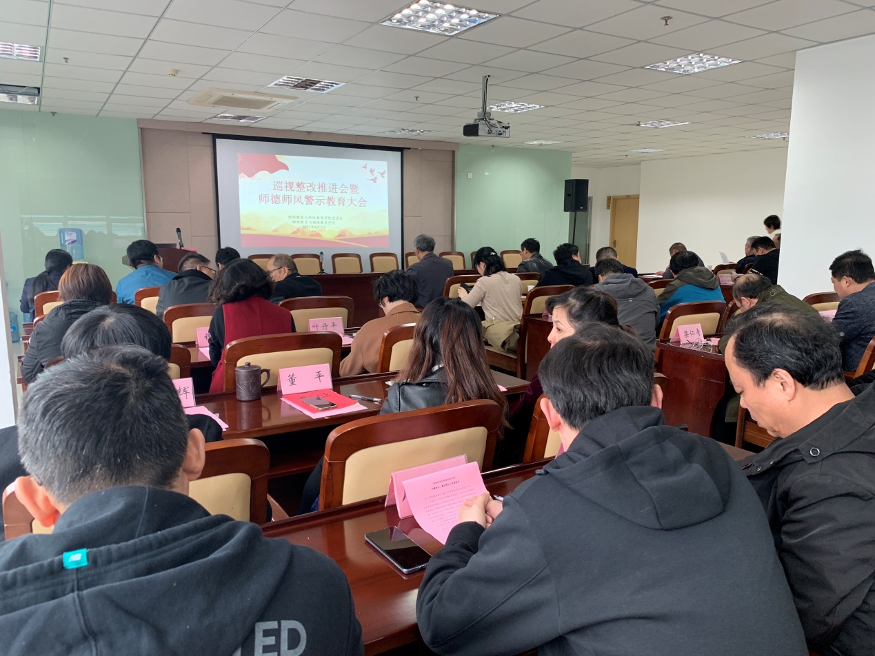 近日,继续教育与网络教育学院召开巡视整改推进会暨师德师风警示教育大会。会议由院纪检委员、副院长王小燕主持。全院教职工、无锡直属总站各校外站点外方负责人出席会议。
