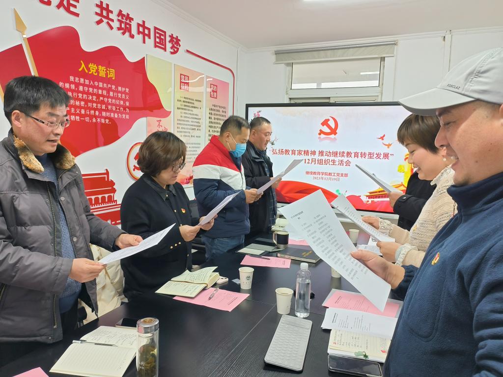 最后,魏静对本次组织生活会进行点评。她表示,本次活动准备充分、内容充实、形式多样,同时也体会到大家投身终身教育事业的感情和付出以及攻坚克难的勇气,她充分肯定了继续教育学院在这一年来的转型、改变和取得的成绩。她对学院今后的发展提出了三点建议:一要找准定位。继续教育是高等教育系统工程的有机组成部分,完善高质量的教育体系核心就是人才培养,继续教育为人才培养、技能提升发挥着不可或缺的重要作用。二要注重协同。继续教育要与全日制教育进行统筹、非学历教育要指导帮助其他学院发展、要对接地方需求,增强社会服务功能。三要持续深化改革。努力破解发展的深层次体制机制障碍,更好地遵循教育教学规律,完善继续教育体系,优化办学体系,规范办学行为。