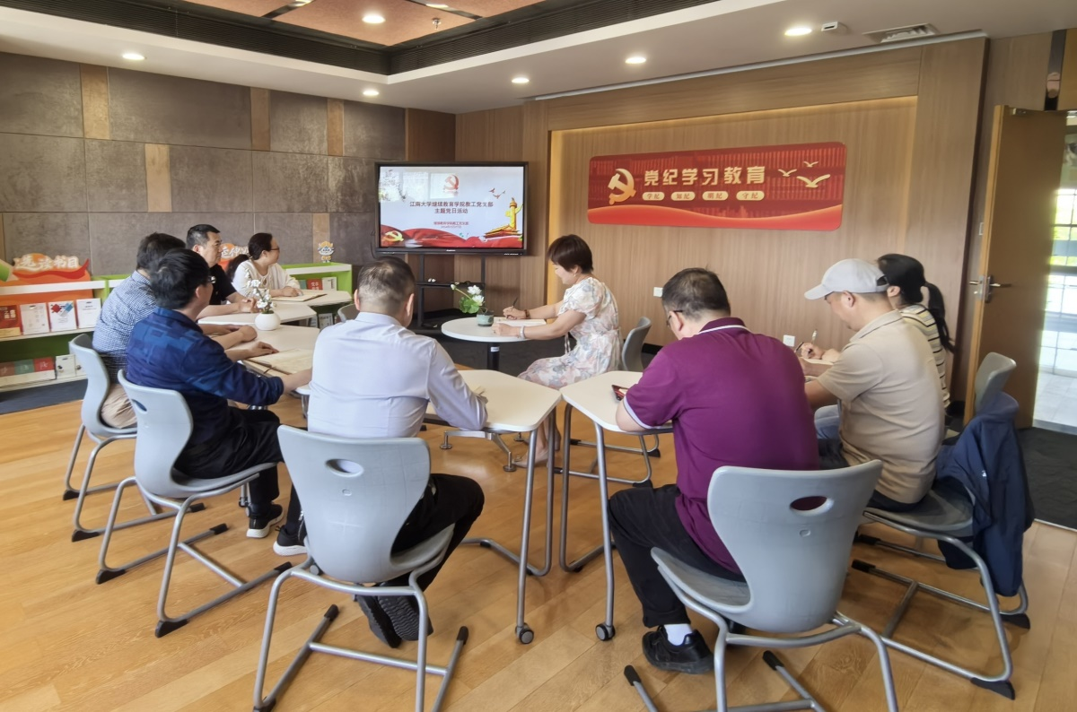 5月17日下午,继续教育学院教工党支部在学校图书馆三楼鼋元阅享空间学习书房开展党纪学习教育系列主题党日活动。会议由党支部书记黄芳主持。