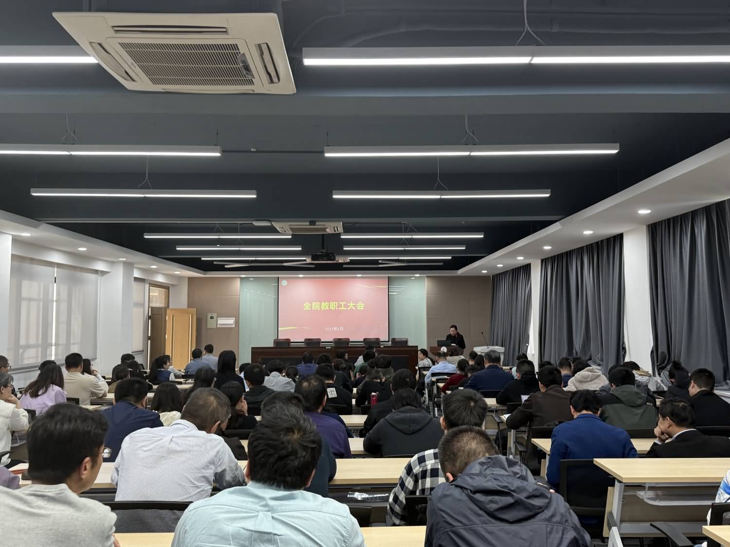 学院院长杨国锋结合以往职称申报的案例和经验,对职称申报条例中重要事项再次做了提醒和解读,并传达了学校和学院针对年度考核和津贴方案的改革新动向。希望全体教职工积极转变思想观念,切实履行岗位职责,发挥主观能动性,扎实开展教学科研等工作,推动学院事业取得新发展。