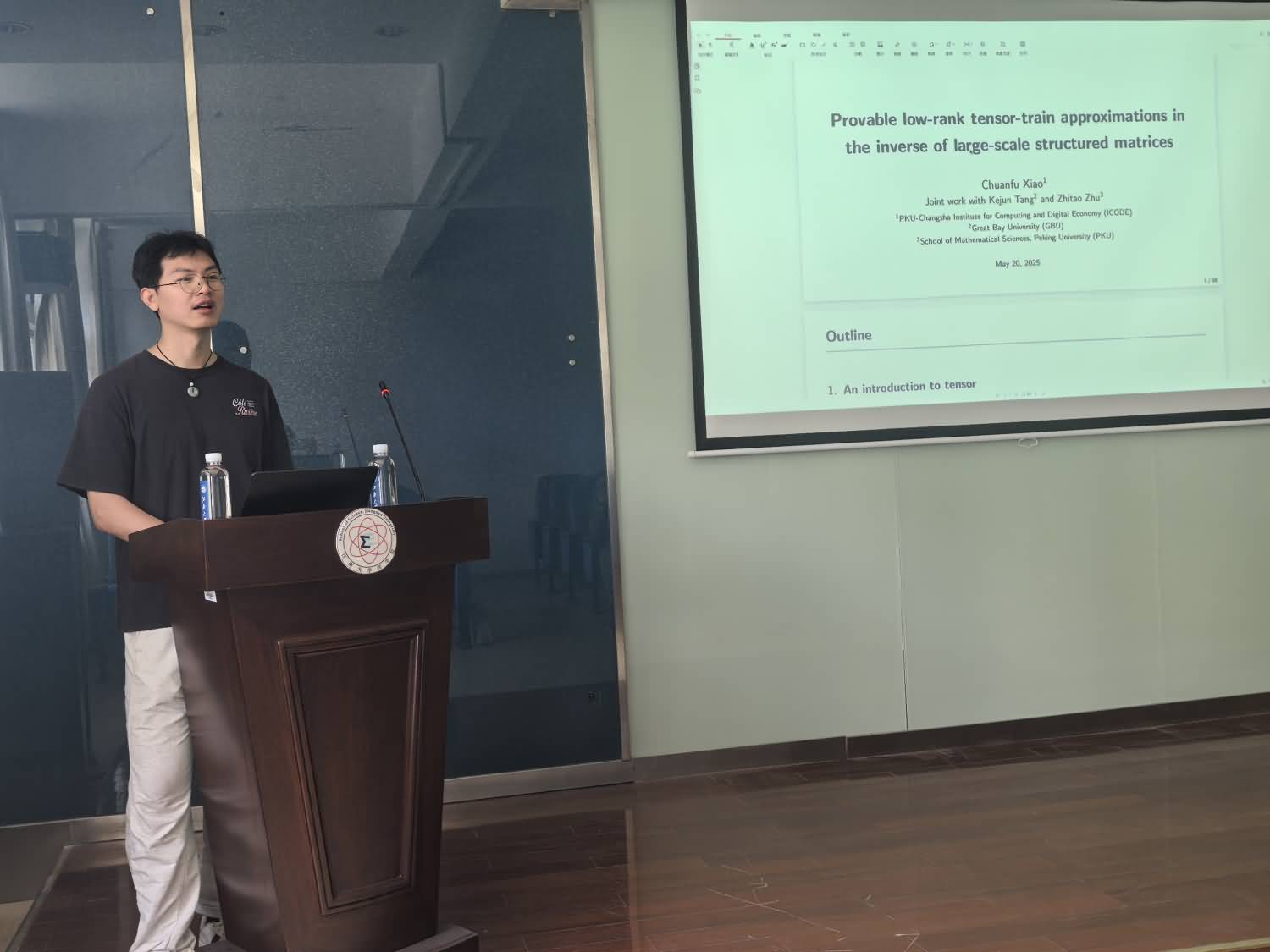 5月26日上午,北京大学长沙计算与数字经济研究院肖传福老师应邀在理学院钱伟长楼202带来了一场题为“Tensor Train分解在大规模结构矩阵求逆上的应用”的学术报告。报告会由理学院杜歌阳老师主持,理学院部分教师聆听了报告,并在报告结束后与肖老师进行了积极地讨论。