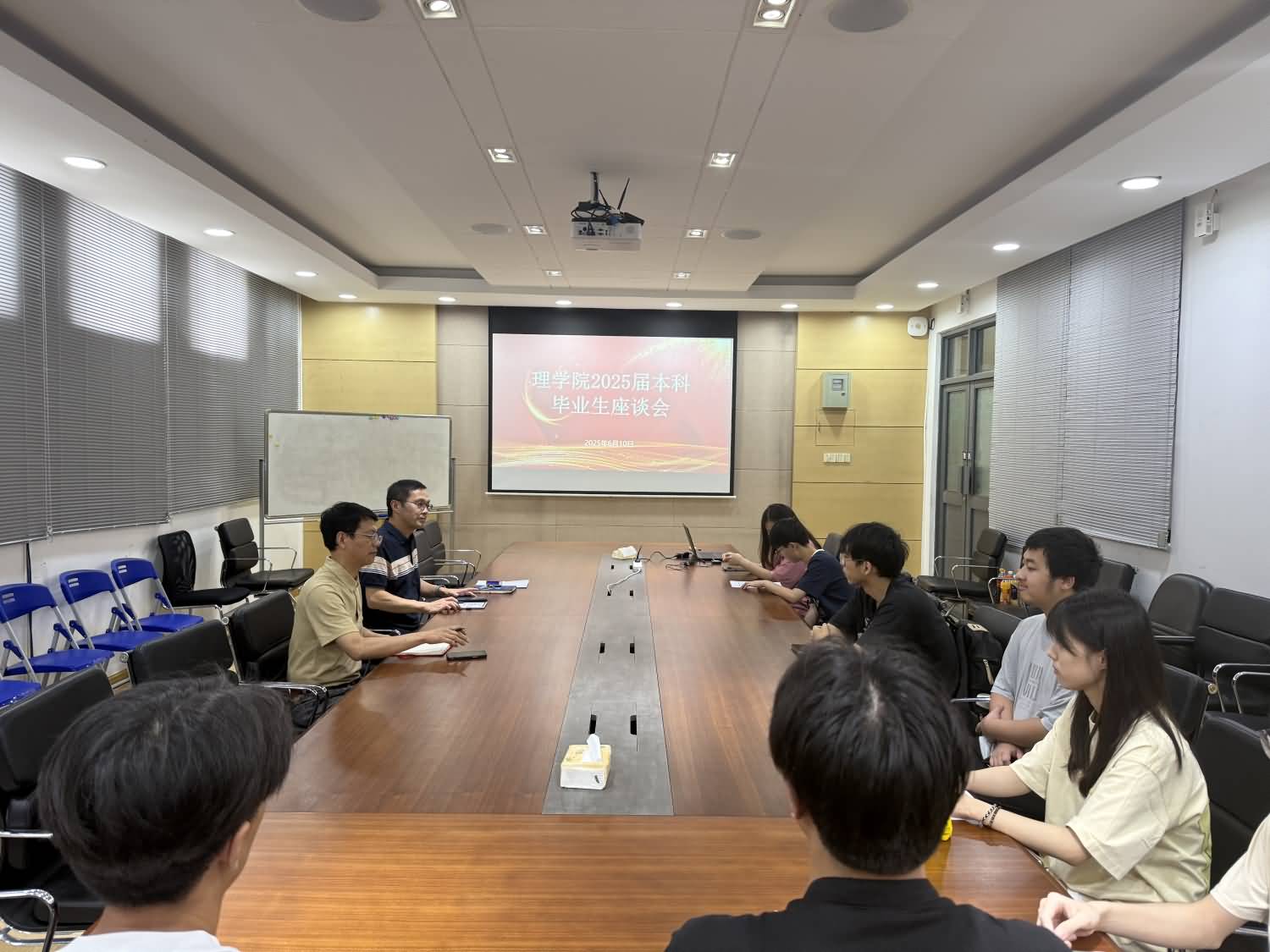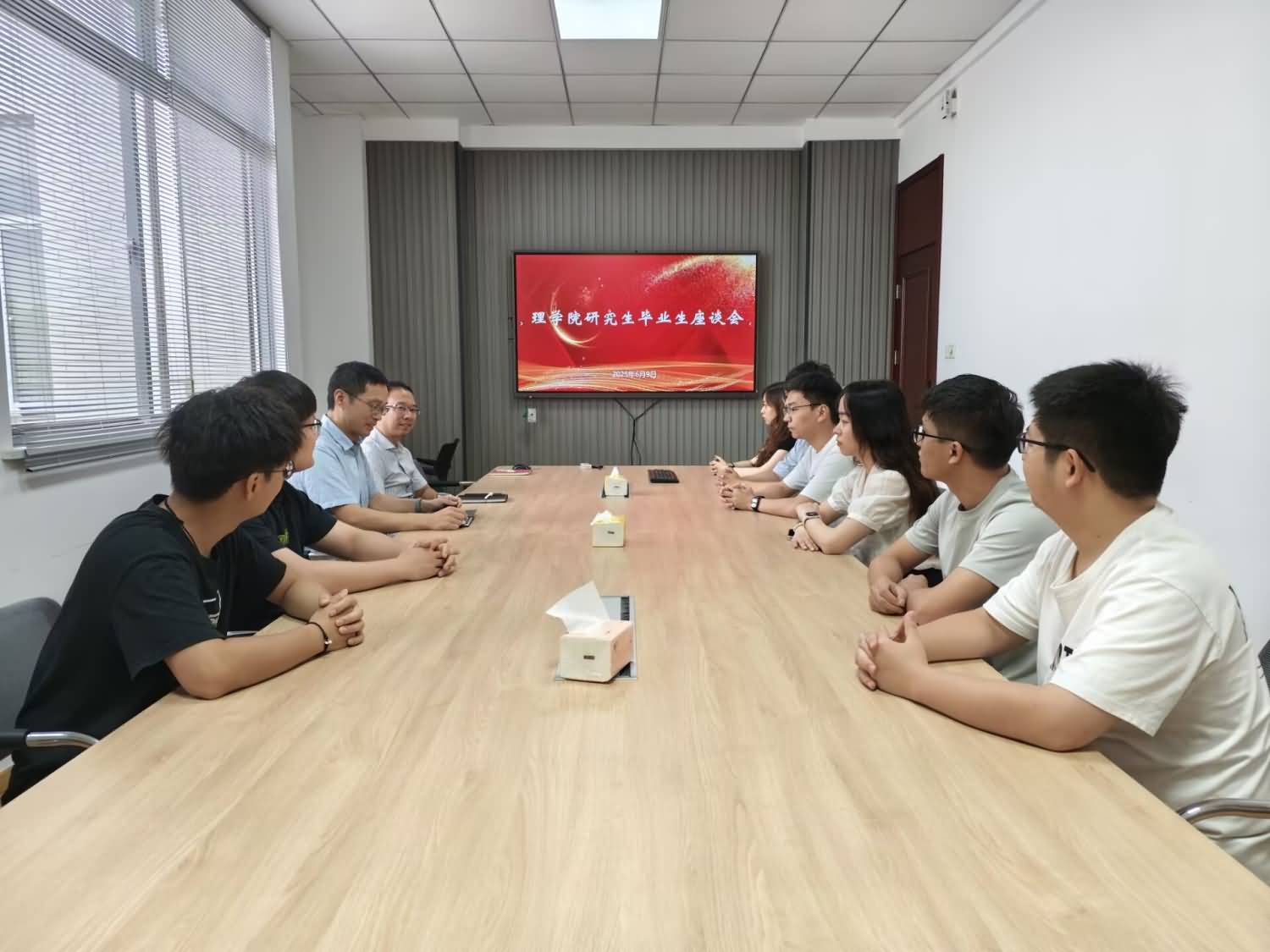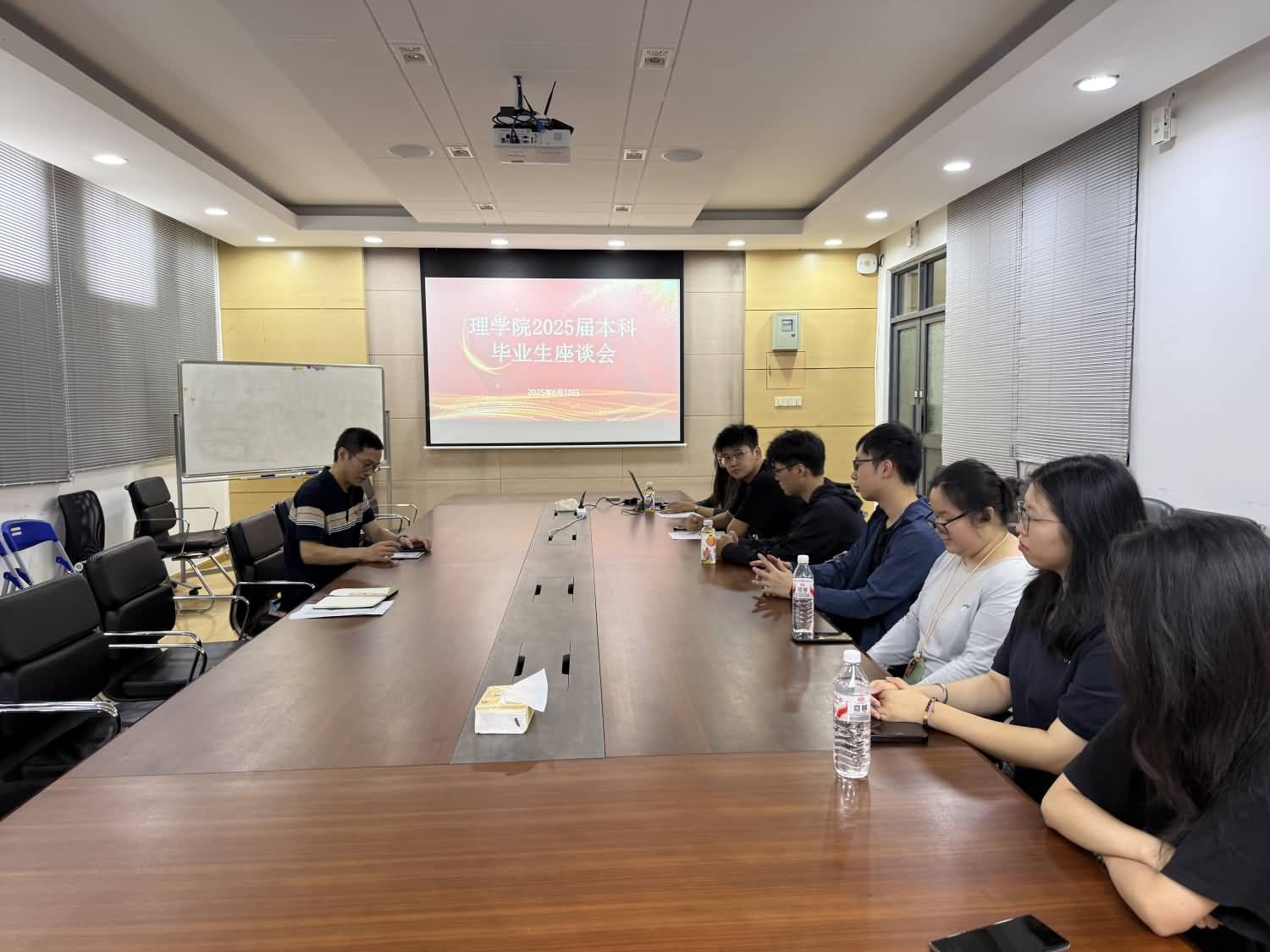 6月9日—10日,在2025届毕业生即将毕业离校之际,理学院召开毕业生代表座谈会,听取毕业生对学院的意见建议,与毕业生代表共话学院发展。理学院党委副书记兼副院长董小平、副院长席曦、副院长陈晶,毕业班辅导员许金红、苏丹等参加会议。