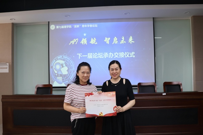6月19日,理学院第七届“至新”青年学者论坛在钱伟长楼216报告厅举办。本次论坛以“AI领航 智启未来”为主题,聚焦人工智能与教育教学的深度融合,为青年教师的成长和发展搭建平台。论坛特邀人工智能与计算机学院教师王锐、学院退休教授朱平做专题讲座。学院党政班子、教务处(教师发展中心)领导及学院全体青年教师参加此次活动。活动由院光电信息科学与工程系教工党支部书记胡征达主持。
