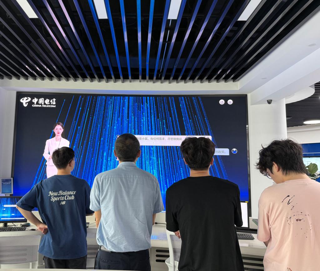 中国电信股份有限公司无锡分公司热情接待了师生一行,详细介绍了公司主要新型业务,包括无人机、数字人等。相关负责人、江南大学校友介绍了公司在人才需求和技术研发方面的情况,并与在场的学弟学妹们热情交流。