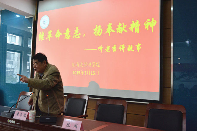 为进一步弘扬雷锋精神,强化奉献意识,3月15日下午,理学院信计1703“雷锋特称团支部”联合光科1803“华罗庚特称团支部”在学院202会议室举办了 “继承革命意志,扬奉献精神——听老李讲故事”宣讲活动。原无锡轻工大学校党委副书记、副校长,现无锡市关工委报告员李宗元老师担任主讲,校机关退休第一党支部书记蒋中华老师,院党委副书记、副院长陈周,18级辅导员曹磊出席了这次活动,本次活动由信计1703团支部书记程莲主持。