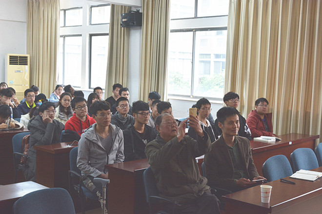 在同学们的热烈欢迎下,李老向同学们娓娓讲述了自己的一生。他从旧中国丧权辱国讲到日本侵华战争,再讲到新中国成立,声情并茂,情绪激昂。谈及过去的屈辱时,他眼里含泪;谈及日军的残暴时,他义愤填膺,一个个故事如数家珍般托出,这些故事渐渐沉淀在同学们心底,让同学们感受到个人命运是深切地与国家命运、民族命运联系起来的,面对茫茫时代之潮,奋斗是每个人的责任。随着新中国成立,李老进入高校任教,开始了数十年的教育生涯,奉献了自己的一生。李老总结了自己一生的经历,鼓励同学们努力学习,提升自我,奉献社会。他强调,爱国是我们的第一目标,也是第一根基,不谈爱国,谈什么都没有意义。而在这个新时代,作为新时代的青年,不忘初心、牢记使命,履职尽责,砥砺前行是国家与社会对每个年轻人的厚望。