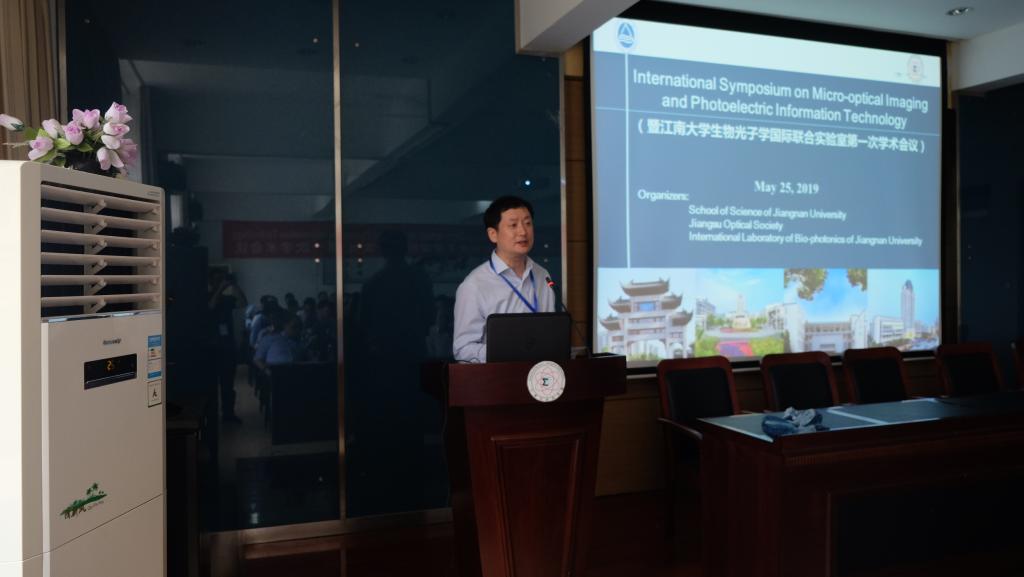 5月25日,2019International Symposium on Micro-optical Imaging and Photoelectric Information Technology暨江南大学生物光子学国际联合实验室第一次学术会议在江南大学理学院钱伟长楼202室举行。会议特邀专家白俄罗斯戈梅利国立大学校长S.Khakhomov教授、副校长I.Semchenko教授、白俄罗斯科学院院士A.V. Rogachev教授、中-白孔子学院院长L. Wang教授、戈梅利国立大学A.Balmakou教授、南京大学T.Xu教授、苏州大学X. Li教授、苏州师范大学C. Han教授、中科院上海技术物理所J. Zhou教授、南京理工大学L. Li教授、西湖大学Z.Zhang教授以及上海交通大学W. Wan等来自6个不同国家的光学专家以及光电系教师和研究生参加了本次会议。会议由理学院副院长刘诚教授主持,理学院院长及生物光子学国际联合实验室主任陈国庆教授和科研院副院长刘晓宏教授分别代表学校和学院致欢迎和开幕词。