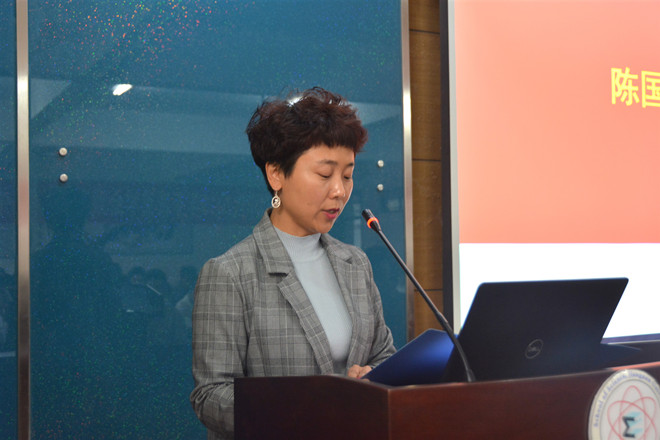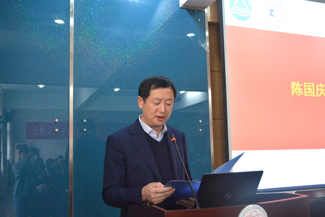 典礼伊始,陈国庆致辞。他首先介绍了“至新奖学金”的由来:2016年吴新校友为回馈母校,捐赠十万元专项基金,在学院设立了“至新奖学金”。同时,他对吴新校友因工作缺席典礼表示遗憾,对他心怀教育、慧荫桑梓的善举表达了崇高的敬意和衷心的感谢,对获奖同学表达了热烈的祝贺。他进一步介绍,从2018年起将原海外学习奖励扩大为海外学习、科研创新、社会工作三类奖励。他指出,“青年兴则国家兴,青年强则国家强”,青年人要担负起时代的使命,勇立潮头,立志报国,树江大情,与学院同奋斗、共进步;他对同学们提出三点要求:一是坚持家国情怀,放眼未来世界;二是坚持奋斗求学,致力科研创新;三是坚持感恩之心,积极回报社会。