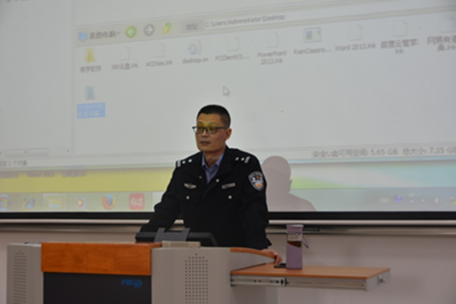 11月11日下午,邀请了滨湖公安分局公安内保大队副队长乔警官为新生开展安全知识讲座,会上,乔警官以其生动形象的讲解,结合文字、图片与视频的形式,从各方面给全体新生进行安全知识教育,提高了新生的安全意识,为每个新生的大学生活提高了一份保障。