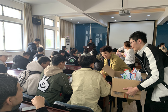 学院领导老师为同学们发放礼品