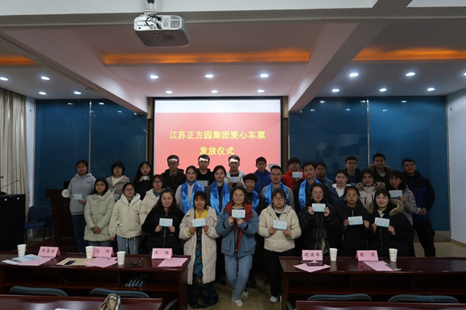 据悉,2018年,江苏正方园集团出资100万在我校设立“江苏正方园集团少数民族学生成长基金”。爱心车票是该基金支持学生成长的项目之一,体现了对少数民族困难学生的关心和爱护。第一批受益学生在思想学业等全方面获得了进步,纷纷表示了“预”见正方园,成长更美好的感恩之情。