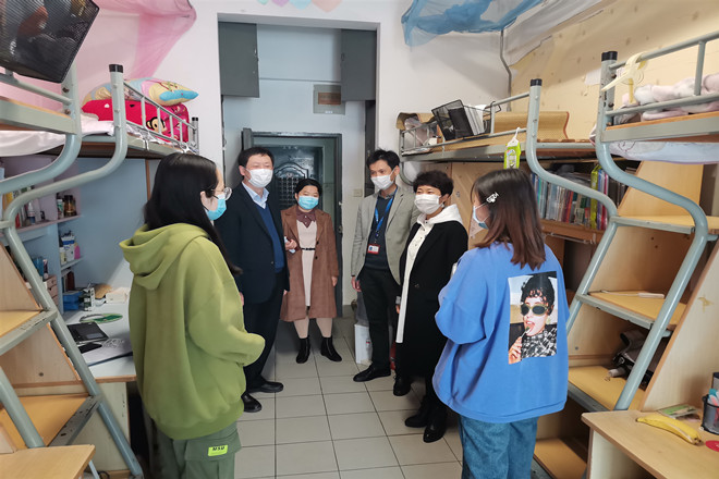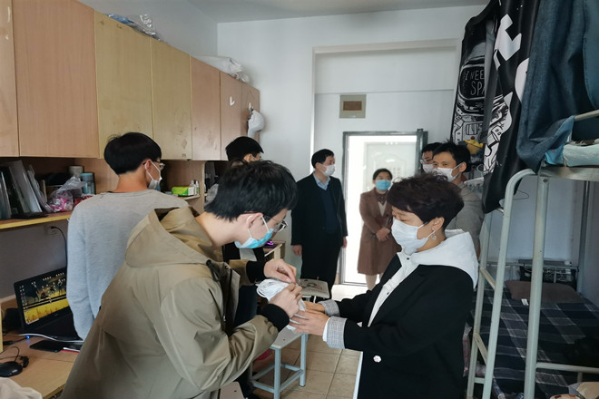 为了加强返校学生的疫情防护意识,关注学生健康状况,4月22日上午,理学院党委书记王珏,院长陈国庆,院党委副书记副院长陈周等一行走访学生宿舍进行慰问。
