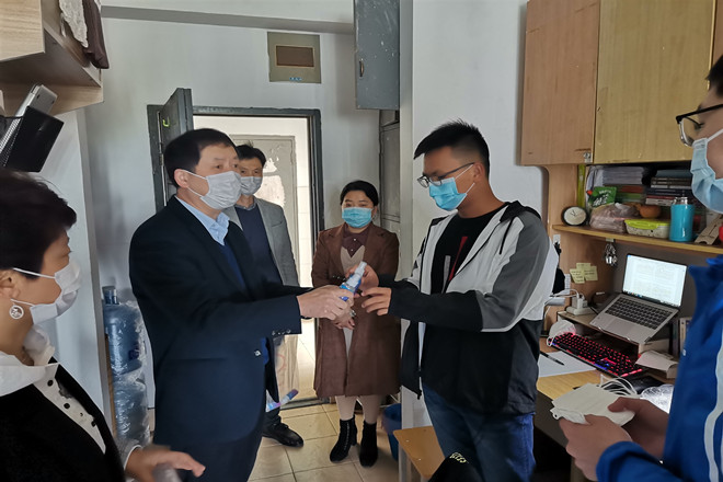随后,学院领导为同学们分发了学院为同学们准备的部分防护用品。同学们对学院的暖心行动深表感谢,他们表示谨记学院和学校要求,遵守学校管理规定,做好自我防护,合理有序的安排学习和生活节奏,争取顺利毕业。
