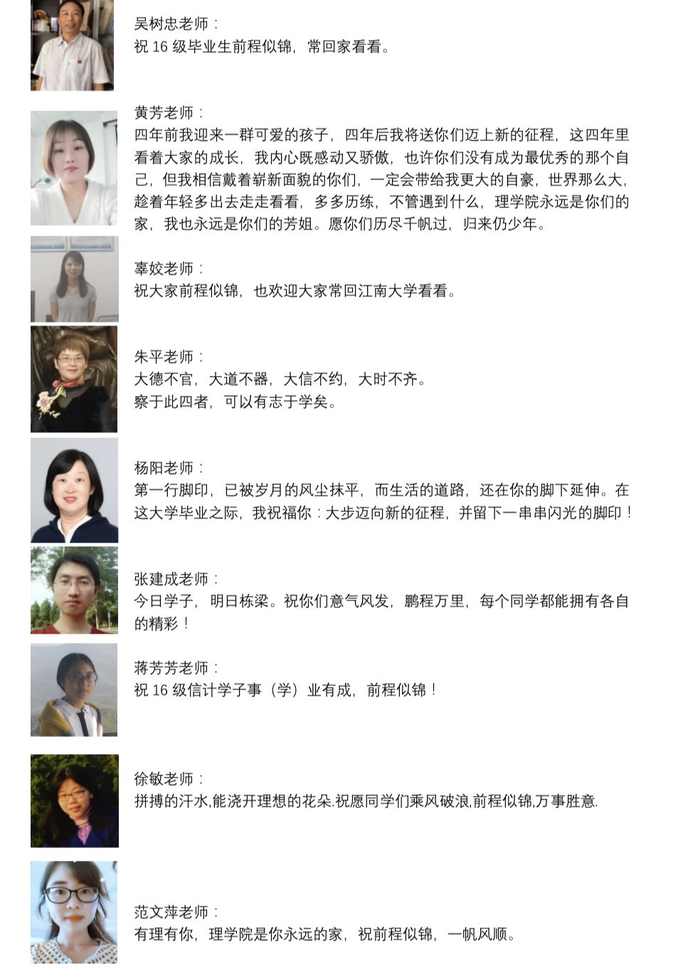 信计系毕业班的班主任老师和专业课老师为学生用视频和图文的形式送上祝福