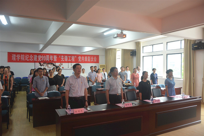 7月14日下午,理学院全体党员在院202会议室召开庆祝建党99周年暨“先锋工程”表彰大会。校党委教师工作部部长徐锡清,校党校专职副校长兼党委组织部副部长周雪晖,院党委书记王珏,院长陈国庆出席会议,学院党政领导班子其他成员、全体师生党员参加会议。大会由院党委副书记陈周主持。