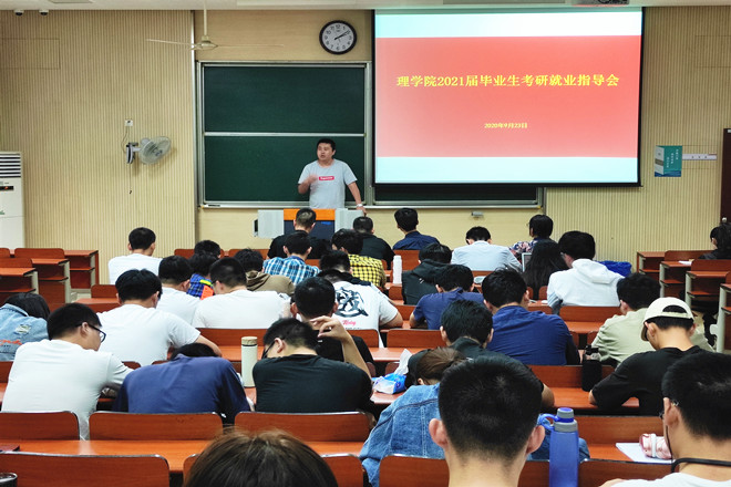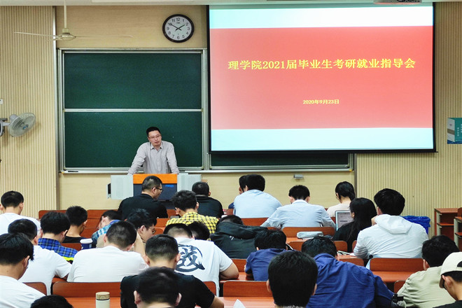 纵有疾风起,考研就业不言弃。9月23日,理学院2021届毕业生考研就业指导会在一教1C101圆满举行。理学院副院长胡满峰、校招生就业处就业指导中心副主任胡国顺、光电系党支部宣传委员王继成受邀为学生做考研预报名指导和就业市场分析,院党委副书记、副院长陈周,本科毕业班班主任、毕业班辅导员苏丹出席本次会议,2021届全体本科生参加,会议由苏丹主持。