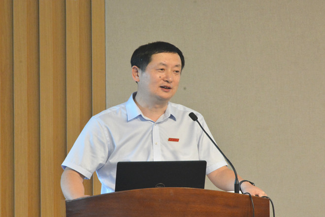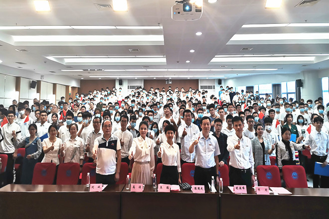陈国庆介绍了学院的基本情况。他以图文的形式清晰展示了学校和学院发展的历史沿革路径,介绍了学院专业学科背景、科研工作平台、人才培养优势以及学科发展特点等。他围绕《怀揣家国情怀,争做时代新人》主题,从“坚持、规划、管理”三个方面向新生们提出三点期望:一是期望新生能坚持自己的梦想,怀揣家国情怀,不忘初心,争做具有大智慧、大格局、大视野的时代新人;二是期望新生能规划好自己的学习生活,确定目标,踏实前行;三是期望新生能管理好时间、情绪以及身体,将精力放在学习和科研上,踏实做事,诚实做人。