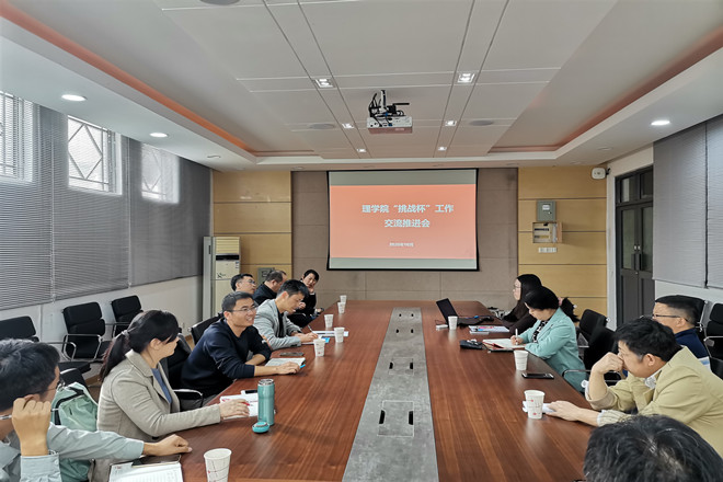 10月29日下午,理学院2020“挑战杯”工作交流推进会在钱伟长楼201举行。会议邀请了校团委组织部部长夏京璟,药学院药学系主任邱立朋教授做现场交流,院党委副书记、副院长陈周出席会议,副院长刘诚等十多名专业教师参加会议。会议由院团委书记王健主持。
