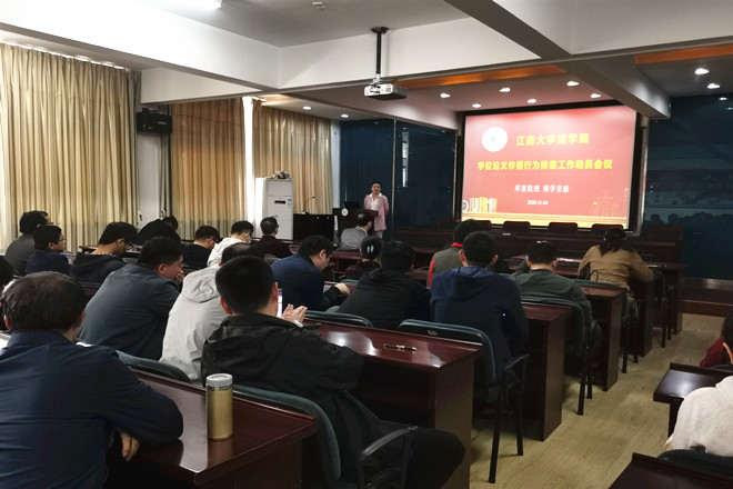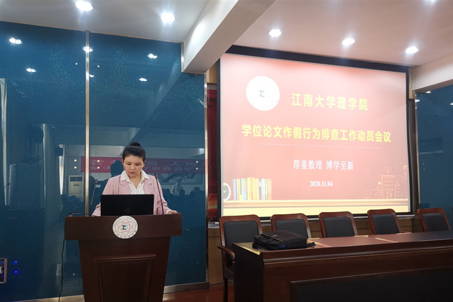 为落实教育部《关于几起高校学位论文作假行为查处情况的通报》等文件精神,加强学位论文管理,提高研究生培养质量,配合学校开展研究生学位论文作假行为全面排查工作,理学院于11月4日下午召开了学位论文作假行为排查工作动员会议,学院全体导师参加了此次会议,会议由理学院副院长高洁主持。