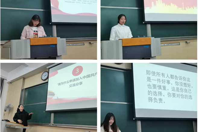活动伊始,苏丹介绍了举办本次活动的初心及意义。王琦琦介绍了发展党员的程序步骤,让同学们对党员的发展流程有了更加深入的了解,同时讲述了宋庆龄、朱德、华罗庚的入党故事,优秀党员先辈们的入党历程让同学们心潮澎湃,为革命先辈们的坚定信念而感动。