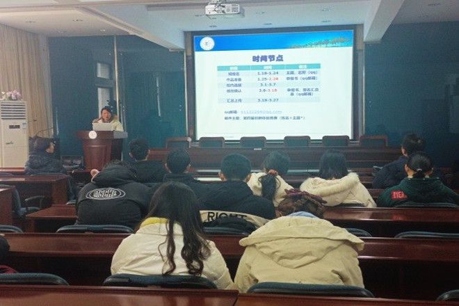 会议现场,竞赛领队朱纯老师首先向与会学生及指导教师就第四届全国大学生创新体验竞赛的参赛对象、报名要求、作品要求、提交要求、提交方式及时间节点等一一进行了说明。