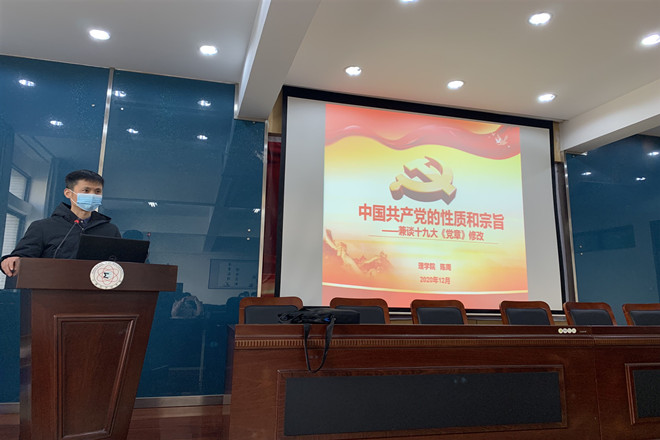 此次培训会分为两讲。陈周主讲“中国共产党的性质和宗旨”;他结合“抗疫精神”和十九大《中国共产党党章》的修改,深刻地解释了党的性质与宗旨以及指导思想。重点强调了党的基本宗旨和习近平新时代中国特色社会主义思想。他号召全体积极入党分子:坚定理想信念、坚持以学为本、强化行为养成,以实际行动向党组织靠拢。