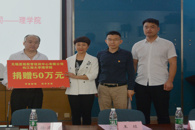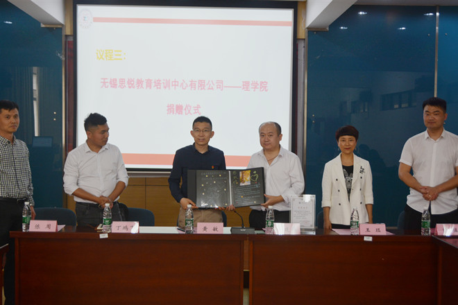 随后,黄敏和徐建伟就无锡思锐教育培训中心有限公司在江南大学设立“思锐奖助学金”进行签约。紧接着,王珏代表学校接受捐赠,并给思锐教育颁发捐赠证书。