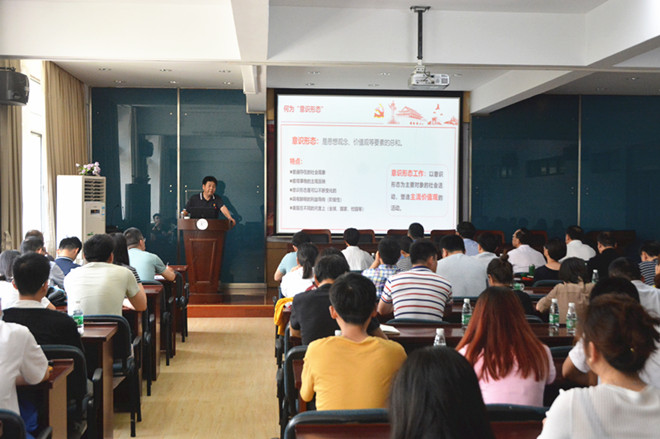 会上,倪松涛做了“守土有责 守土负责 守土尽责”的主题讲座。他从意识形态的释义与起源出发,深度分析了中国共产党建党历史进程中,意识形态工作的发展变革。他指出,中国共产党是以信仰立党的马克思主义政党,对意识形态的重视始终一以贯之,而随着党所处的环境和任务的不同,意识形态工作同时呈现出了不同的时代特点。十八大以来,党中央把能否做好意识形态工作提升到“事关党的前途命运,事关国家长治久安,事关民族凝聚力和向心力”的历史新高度,而十九大报告明确提出了“建设具有强大凝聚力和引领力的社会主义意识形态”新要求。
