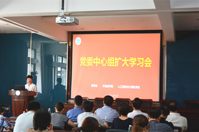 5月31日下午,理学院、外国语学院、人工智能与计算机学院共同开展党委中心组扩大学习会。会议邀请了校党委常委、党委宣传部部长倪松涛做专题讲座,理学院、外国语学院、人工智能与计算机学院全体党委中心组成员,各党支部委员参加会议。会议由理学院党委书记王珏主持。