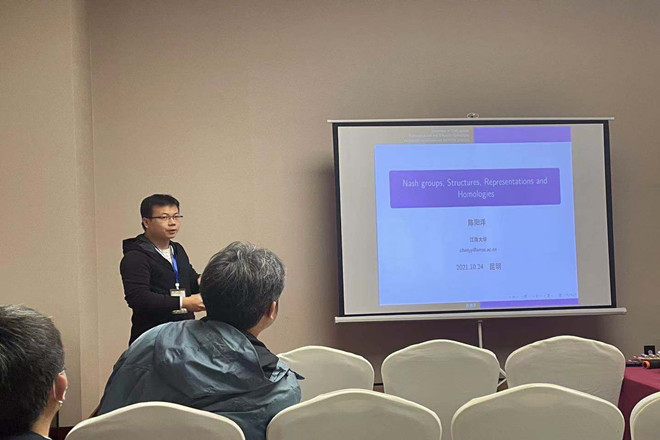 理学院陈晶教授、陈阳洋博士经学院、江苏省数学会层层推荐,获邀分别在运筹学与控制论分会、代数与数论分会作了“多方向梯度算法与区间补偿梯度算法”“Schwartz homologies of representations of almost linear Nash groups”的报告。这也是我校数学学科教师首次在中国数学会学术年会上亮相。两位老师形象生动地介绍了所研究方向的主要创新点及未来的研究方向,报告引起了与会专家的热烈讨论,并得到了一致好评。会议期间,两位老师与其他高校的同行们还进行了充分的学习和交流,进一步扩大了我校数学学科在全国的影响力。