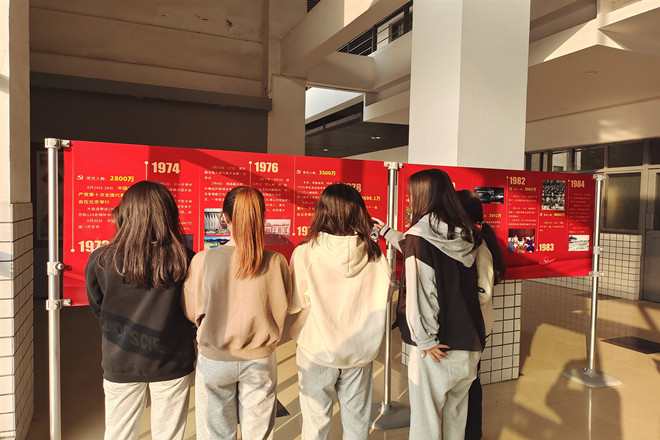 近日,“数说党史,理赞百年”主题展览在江南大学理学院举行,以简洁干练的语言以及鲜明的数字回顾了党的百年历程,成为了理学院一道亮丽的风景线。为加强新生党史学习教育,理学院于11月26日组织全体本科生和预科生分批次进行参观,各班级团支部书记负责讲解展板内容。