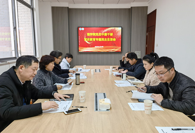 1月10日下午,理学院2021年度党员中层干部党史学习教育专题民主生活会在钱伟长楼211会议室召开。理学院党委书记王珏、院长陈国庆等全体班子成员参加会议。江南大学纪委副书记、巡察办主任、督导组组长丁文勤与会指导并点评,督导组秘书黄新华全程列席会议。会议由党委书记王珏主持。